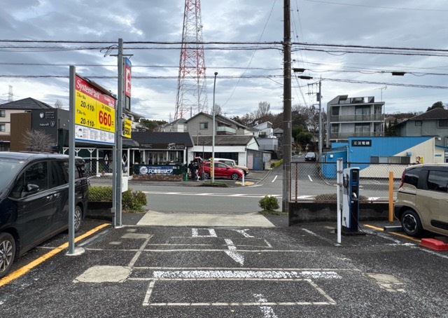 P2に充電器1台あり。 お店からは歩いて1~2分の場所。道路挟んだ八百屋さんの並び。 いなげやさんの契約駐車場の様で500円以上のお買い物で二時間券が発行してもらえる。 P2入ってすぐ左手。 屋上にはありません。
