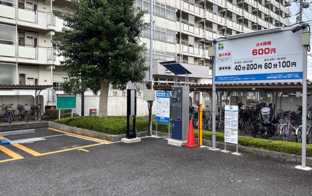 日東工業(株)製3kW普通充電コンセントです。充電ケーブルは必要です。駐車料金600円/24hで満充電はお得です。