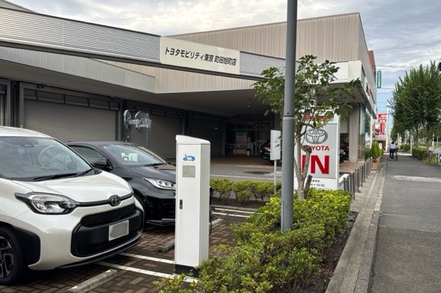 (株)豊田自動織機製3.2kW器です。販社敷地入り左手すぐの駐車場スペースに設置されてます。営業時間内で使用可能です。