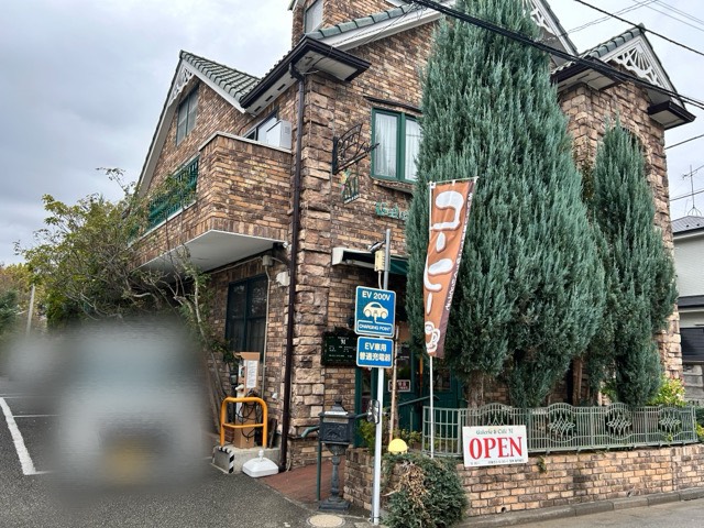 普通充電器が設置されていました。カフェ利用中に利用できますね。ただ、EV充電専用枠ではなさそうなので、充電できない可能性もあります。
