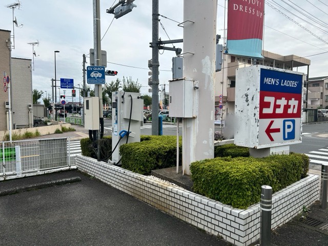 ニチコン製25kw急速充電器が交差点側に設置されていました。e-Mobility Power系カード、エコQ電、ENEOS charge plus認証から利用可能です。25kwの出力だと昨今大容量バッテリー搭載車が多くなっている中、スペック不足が否めないですね。