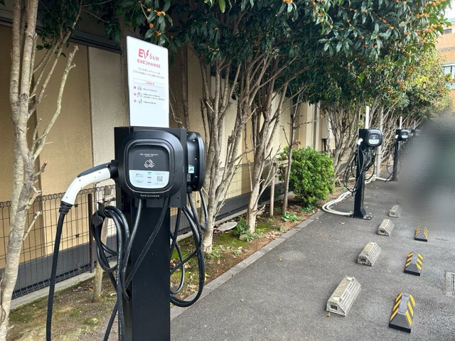3kw普通充電器が設置されていました。 普通車も止められるので注意です。 14台ありますが、同時利用には制限があるそうです。