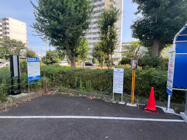 駐車場12台有りNo.1枠に充電器有ります。日東工業(株)製200V普通充電コンセントです。充電ケーブルは必要です。充電無料ですが駐車料金は有料です。※駐車場は都営東京街道アパート駐車場内にありますが、駐車場名は「プラスパークス東大和市清瀬第1」です。