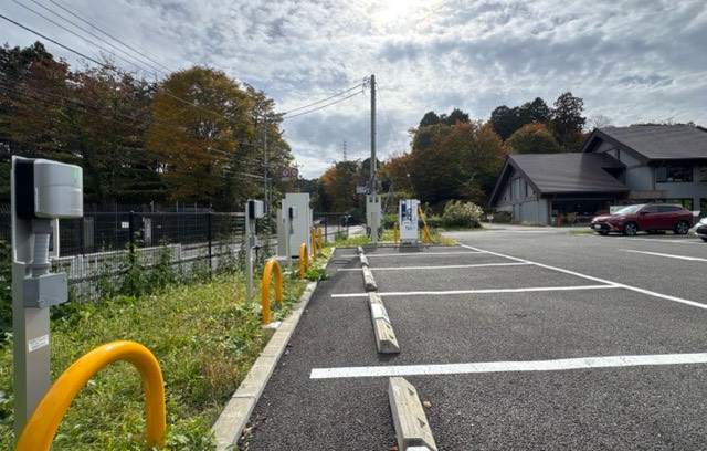 この施設はシステムの都合上、(1)と(2)に分かれて登録されています。 -------------------- 月曜定休(祝日の場合は翌日休)、年末年始休み 25kWと50kWの充電器が1基ずつあります。
