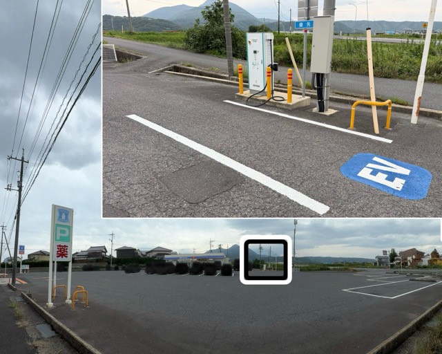 道路から見て、右の奥寄りのあたりにあります。写真追加 コンビニにある充電器はとても便利で有益です。