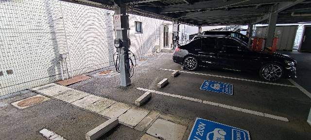 交差点の角の両面に2台ずつあります。 南側は縦列駐車で、西側は右側3台分ぐらいの車室で利用できると思います。 特に西側は4車室の真ん中に設置してもらえれば、EVの充電口にもよりますが4つの車室で利用できたかもしれません、ひょっとしたら5つ目も右奥に充電高があるなら使えるかもしれません。 日産サクラが駐車されていましたが充電はされていませんでした。ホテル利用者には何かしらの割引などがあった方が利用率が高くなる可能性もあるかもしれません。なお、車は編集で車内を見えなくし、色を変えています。