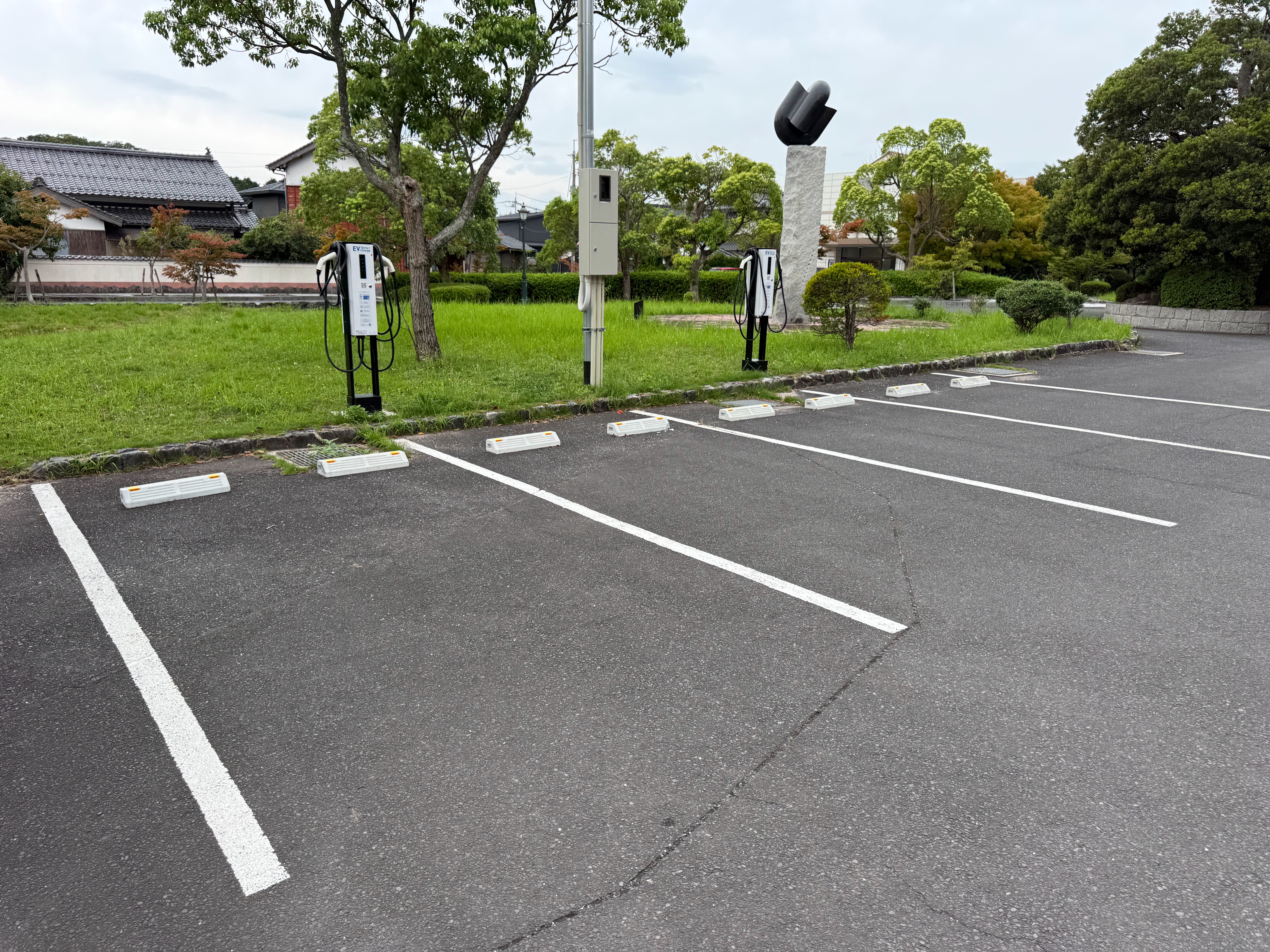敷地に入って左側にあります。 アプリが必須で普通充電の値段もお高めのテラチャージの充電器ですが、ここは役場にあるのおかげか、少しお安めで3kWで1時間150円、6kWで300円となっています。