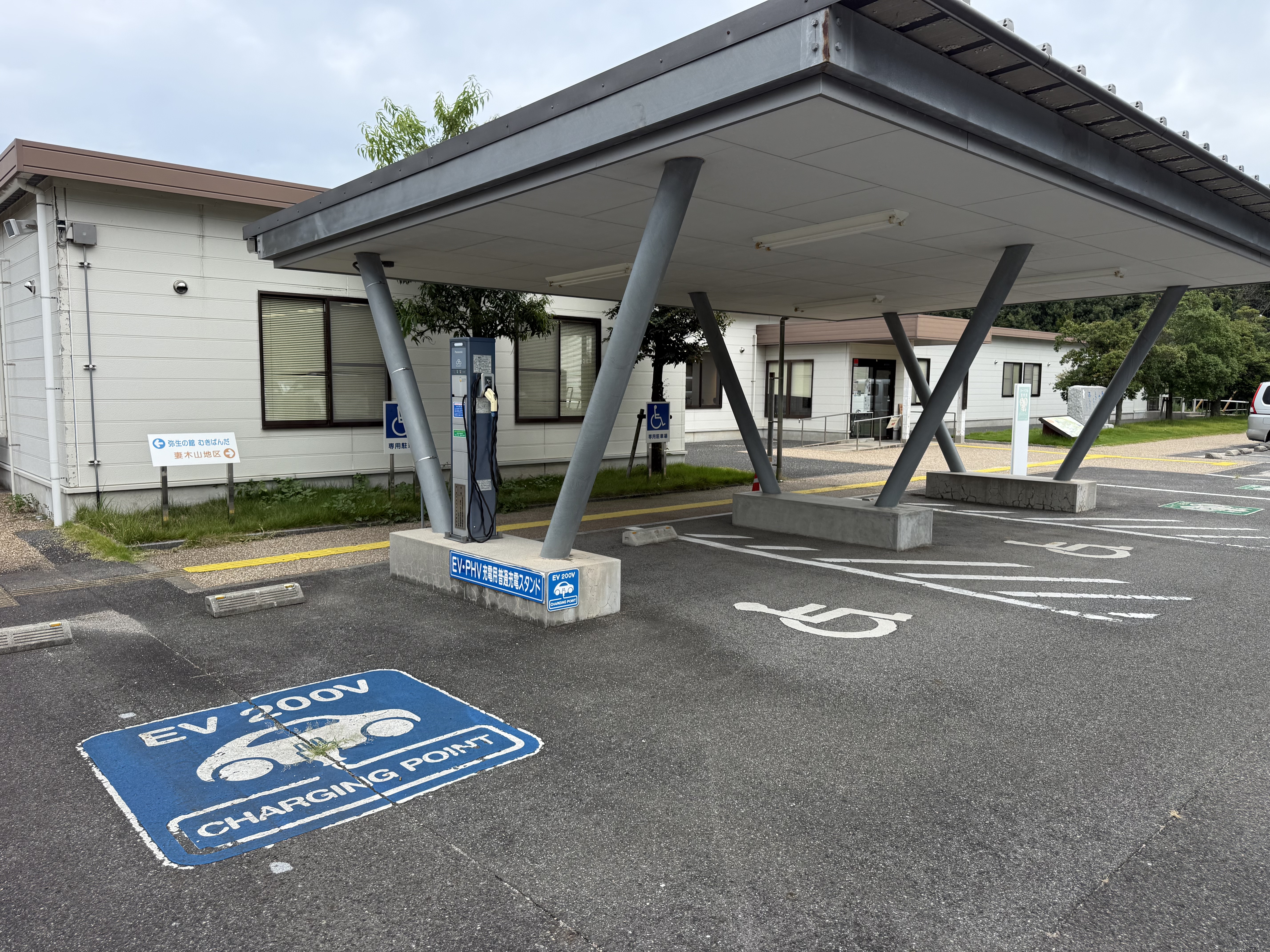 敷地に入ってまっすぐ進むと、右手の屋根の左側にあります。 目的地充電が合うスポットですし、この施設もホームページを見るとなかなか面白そうでした。