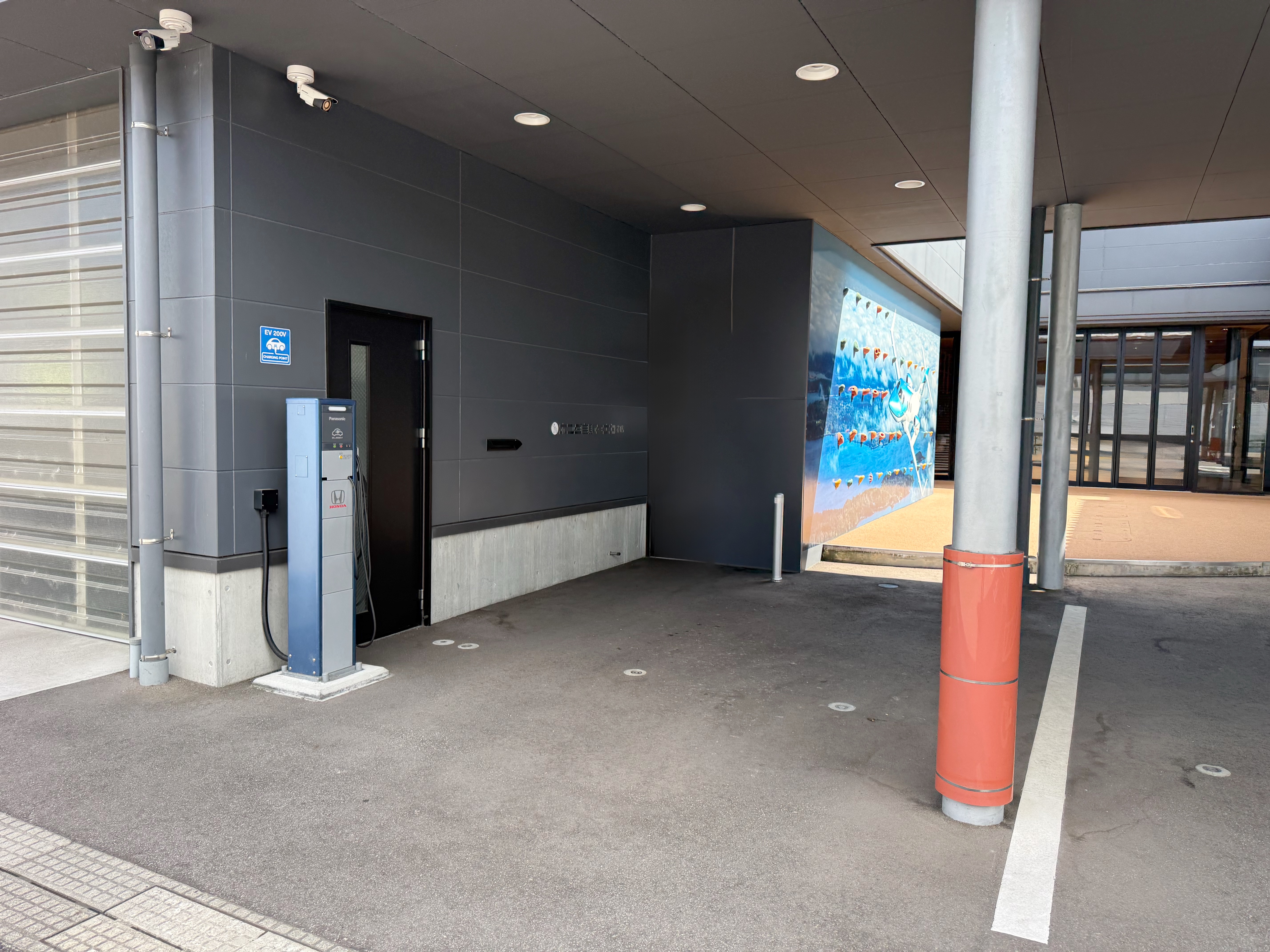 敷地に入って進んで、歩道のあるところを過ぎて右側にあります。