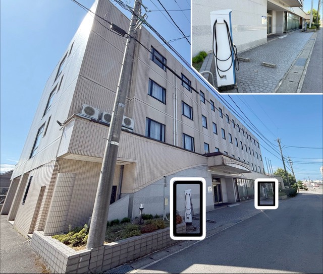 ホテル前、玄関の両側に各1台ずつあります。写真追加 こちらは「TOYOTA Wallet」みたいですが、手続きなどが結構複雑で、確か「TOYOTA Wallet」はエネチェンジの充電器が使えるようになったはずですが、逆は確か無理だったような気がします。エネチェンジのアプリで使えたならばとてもありがたいと思います。間違っていたらすいません。