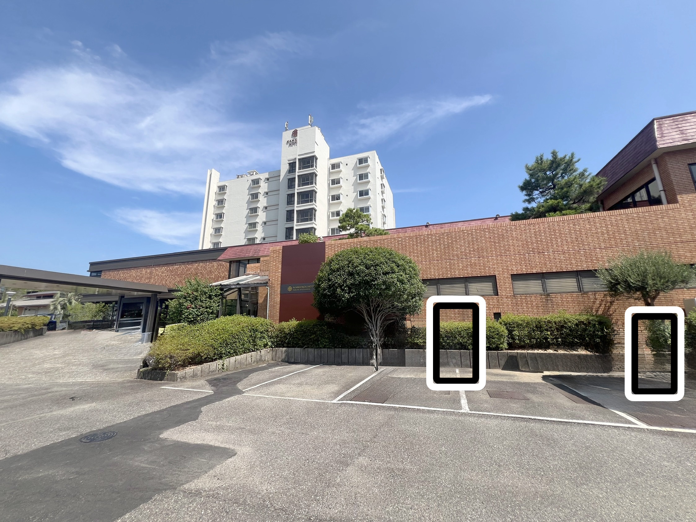 建物の前の車室にあります。 写真は2024年8月のものですが、テラチャージのアプリで2台は枠内にあることは確認しました。