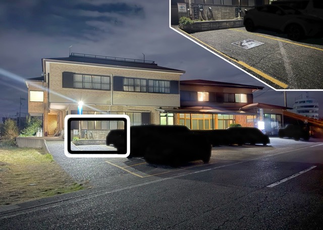 道路から見て左側の建物の前にあります。 1つは非充電車がいましたが、ラスト1台が空いているぐらいの感じでした。