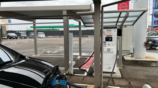 [急速充電器] 90kWの充電器が1基(2台同時に充電可)あります。 ★データチームより★ 最大出力90kWは、お車が対応しており、かつ1台で充電した場合の参考値です。 こちらの急速充電器は蓄電式となります。充電器側の蓄電残量が少ない場合には、お車側の残量が少ない場合でも最大出力は出ませんのでご注意ください。 [普通充電器] コンセントは店舗の営業時間内のみお使いいただけます。 日産車限定。