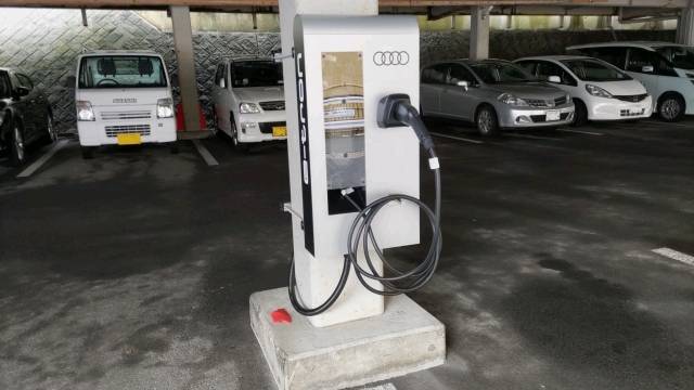 第2駐車場に、Panasonic製200V充電器1台とAudiデスティネーションチャージング(8kW)が2台あります。