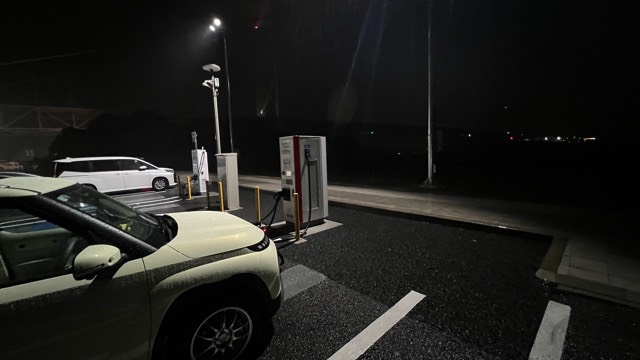 10/21(火)am4時前に撮影した写真です。 EV用CHAdeMO充電設備は、敷地西側に設置された新たな駐車スペースに設置されています。 以前の位置だと、大型トラックが充電用駐車スペースを封鎖していることも複数有りましたが、今回の位置だと流石に大型トラックによる封鎖はありませんでした。