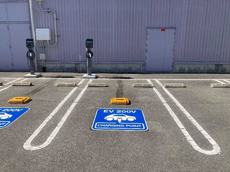 設置場所:国道231号線沿いの入り口より、建物前の駐車場エリアへ入ってすぐ右側、植栽沿いの駐車スペースにEV充電器があります。 どなたでもご利用いただけます。 最大出力6kW