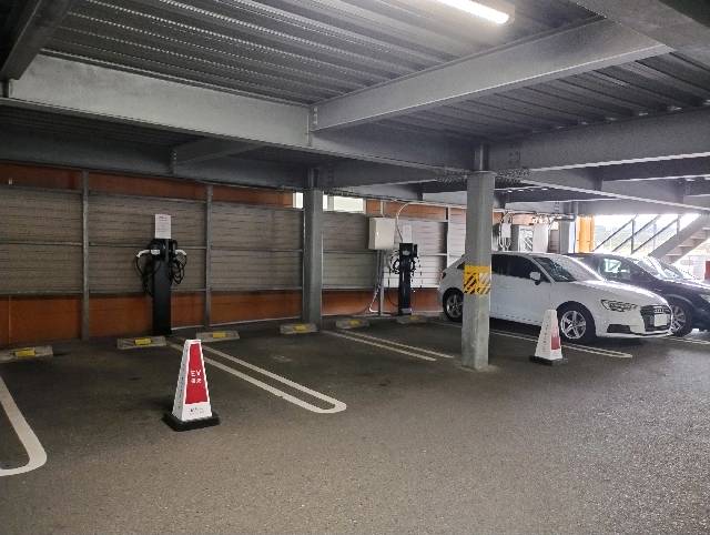 • 店舗裏側(南側)にテラチャージの普通充電器が2口あります。 カラーコーンの設置やEV充電等の表示はないです。