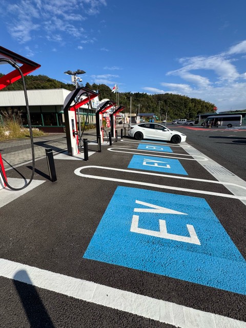 祝祭日24時間150kWの充電器が2基(2台同時に充電可が2基)あります。 ★データチームより★ 最大出力150kWは、お車が対応しており、かつ1台で充電した場合の参考値です。