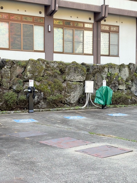 設置場所:施設駐車場に入ってすぐの建屋壁面に、EV充電器があります。 最大出力6kW