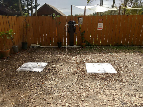 スロープ上がった屋根付きエリアにあります