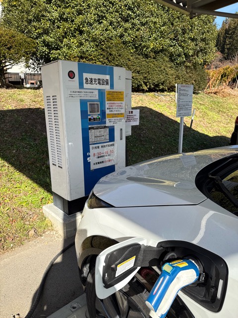 混んでるかな〜と思ったら充電器は空いてました。観光案内所で鍵を借りて80%まで(最長30分)無料で充電できます。来訪者満足度調査のアンケートにも回答させていただきました。