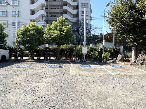 駐車場の手前にあります。前向き駐車がしやすい場所です。