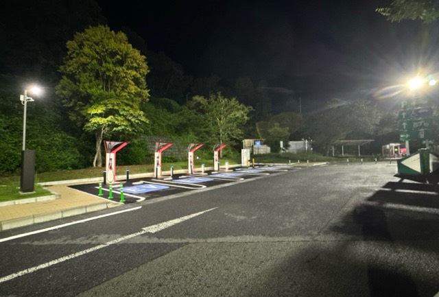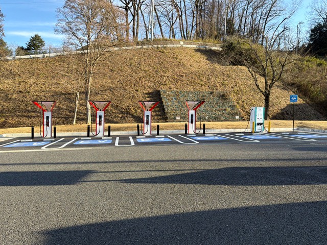 (株)東光高岳製90kW×2口器とニチコン製150kW×4器です。SA入ってすぐ左手に設置されてます。