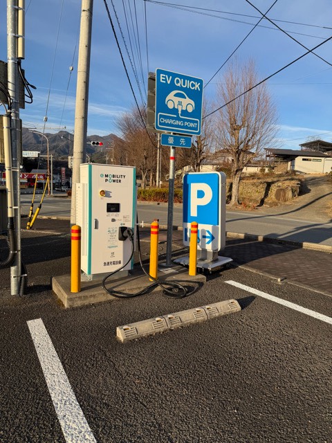 初めて昼間利用しましたが、液晶が知ろっちゃけていて全く見えません。よくあるTAKAOKA TOKO(東光高岡)製の急速充電器なので、充電コントローラーに日産ZESP充電カードをあてがいながらボタン連打でスタート出来るのですが不便ですね。ファミマですので出力低く充電速度は遅いですが、コンビニに寄れるので有難いですね。