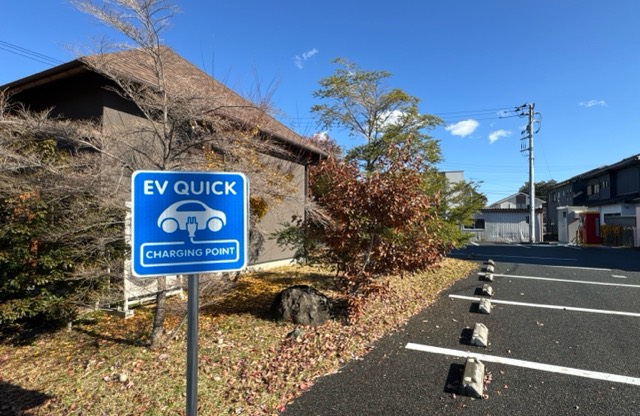 従量課金制FLASHの180kW器のCHAdeMO &NACS×1口器です。店舗敷地南東角に設置されてます。24時間使用可能です。