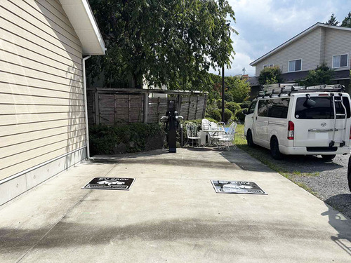 住宅地の駐車場の一角に設置されてます。 周辺の道はとても狭いので、軽自動車向きです。 ヴィラハナサク河口湖という宿泊施設に併設されているので、泊まりながら充電できるのはメリットです。