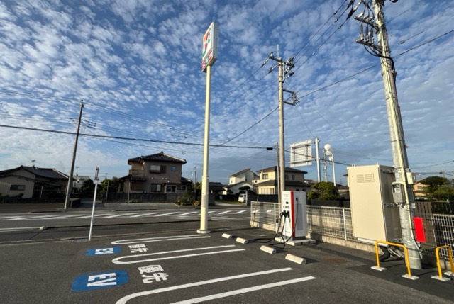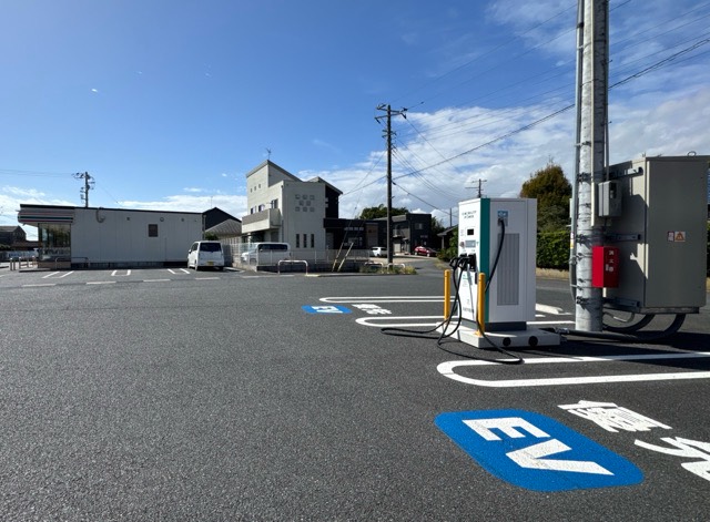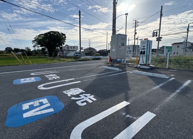 ニチコン製50kW器です。店舗から離れた横芝光I.C交差点側に設置されてます。