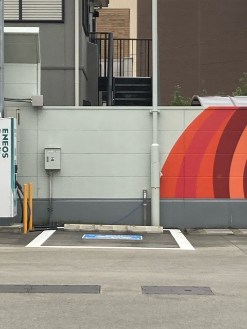 • ガソリンスタンド出口のすぐ横で、止めにくく、給油が終わって出て行く人と目線のやり取りも発生し面倒。 ケーブルも短い上に固く、駐車スペースにはみ出して置かれていたため一度直してから止め直した。 隣にスタッフの車と思われる駐車車両があることもあって、大きな車だと使い勝手が悪そう。 出庫の際はそのままスイッと左折で出れれば良いが、安全を見て大回りした方が楽だろう。