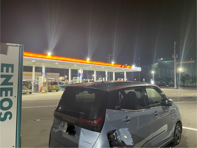 セブンイレブンとエネオスの共通の敷地に設置された急速充電器で バイパス側にありますからわかりやすいです。 駐車スペースも広いですし、充電時間中にセブンイレブンで買い物もできるので便利です。