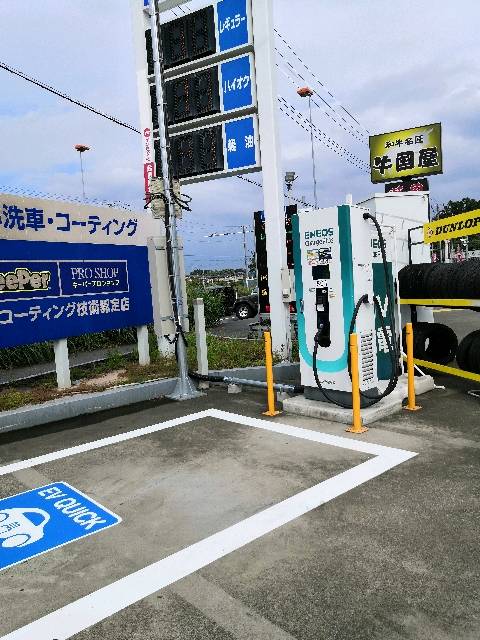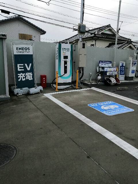 ガソリンスタンド交差点角に50kwhの急速充電器があります。 駐車スペースも広く便利ですが、コインランドリーが併設されていてそちらを利用する方が充電スペースに駐車している場合がありますのでご注意ください。