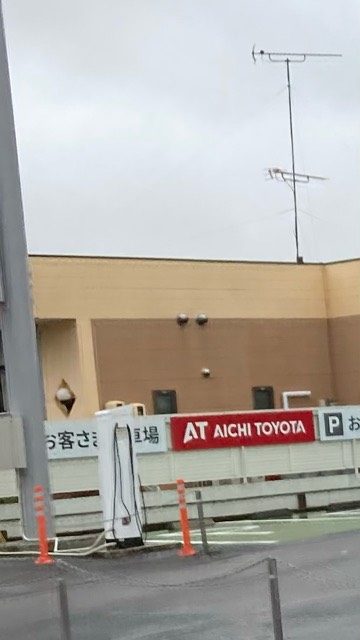 名古屋トヨペットのお客様駐車場の店舗目の前です。 トヨタには珍しく急速充電器がありました。 普通充電器と計2台です。