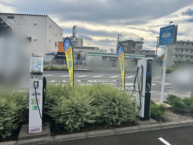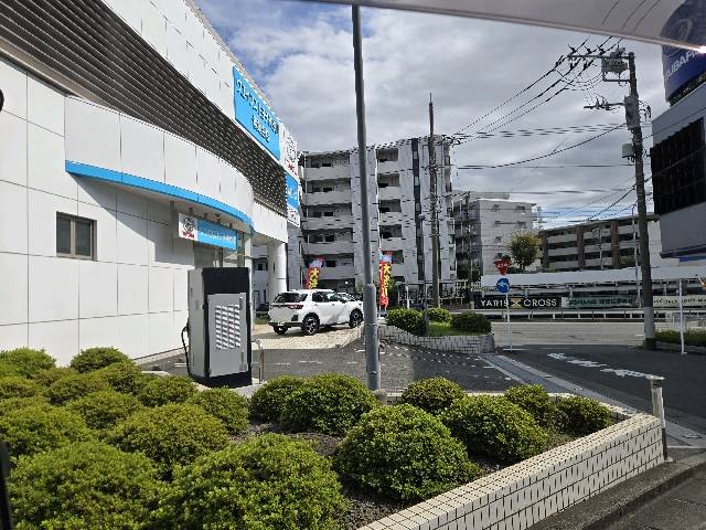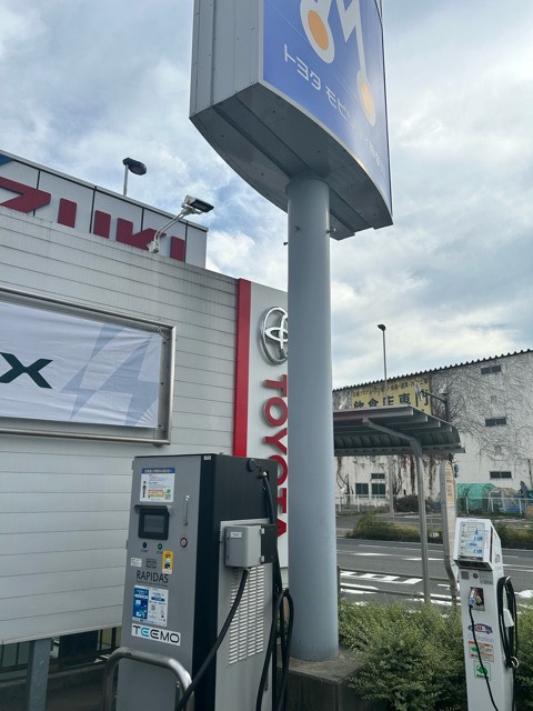 • JFEテクノス製50kW器です。eMP加入カードでは使えず、トヨタの充電カードorビジターでの充電になります。R1上りから販社ショールーム前の路地を入りすぐ右手に設置されてます。R1下りからは中央分離帯があるため右折入庫は出来ません。