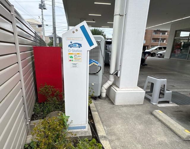 • 充電スタンド前は展示車がありケーブル伸ばして充電です お店にお任せです