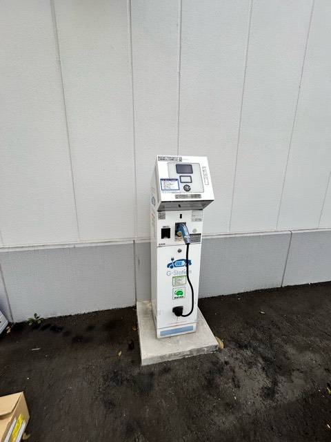 • (株)豊田自動織機製3.2kW器です。販社敷地入り右手、駐車場内に設置されてます。大きなトヨタの看板が目印です。営業時間内で使用可能です。