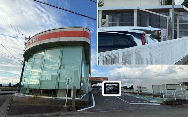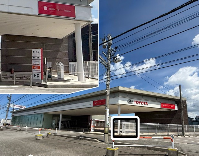 • 敷地に入って進むと「TOYOTA」の文字の下の屋内にあります。文書と写真追加 屋根があるのはありがたいですね。