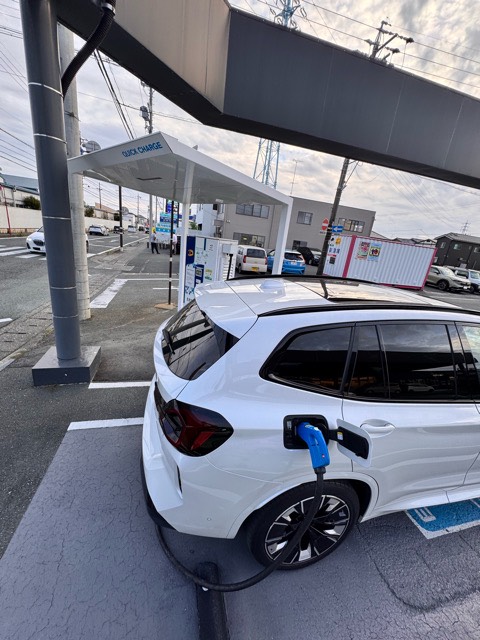 【車種】: BMW iX3 【充電速度】: 普通(90キロ機なのに最高速48キロまででした) 【充電した時間】: 約15分 【ひとこと】: 90キロ2基合計3ポートとは豪勢です。 かんたん充電レポート