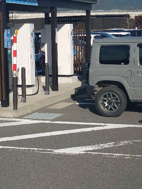 • 行楽シーズンあるあるなんですが、EVのマーキングが無いためEVでは無い車種に占有されて充電出来ませんでした。前後4スペースあっても意味がありませんね(写真の車が悪いわけではありません)