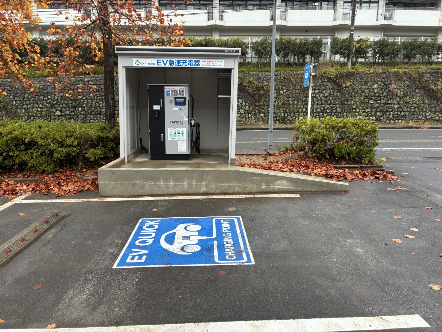 • ダイヘンの50kW器に更新されました! 設置場所が変わり、道路から入って右側の大型車用駐車場にあります。