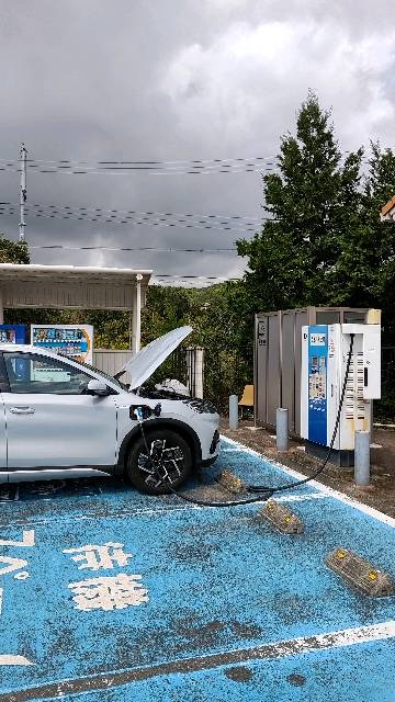 出力制限中です。 道の駅のトイレの脇にあります。 プラグをさして、充電カード認証したら充電できます。あまり入らなかったです。