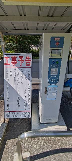 • 使用できるようです。 しかしコイン式で低出力の急速充電器のニーズはあるのでしょうか。 60分化するとかでまだ活用できるのですが。 それと国道9号線(山陰道)沿いの道の駅なので、経路充電向けに90kW機の設置もほしいところです。