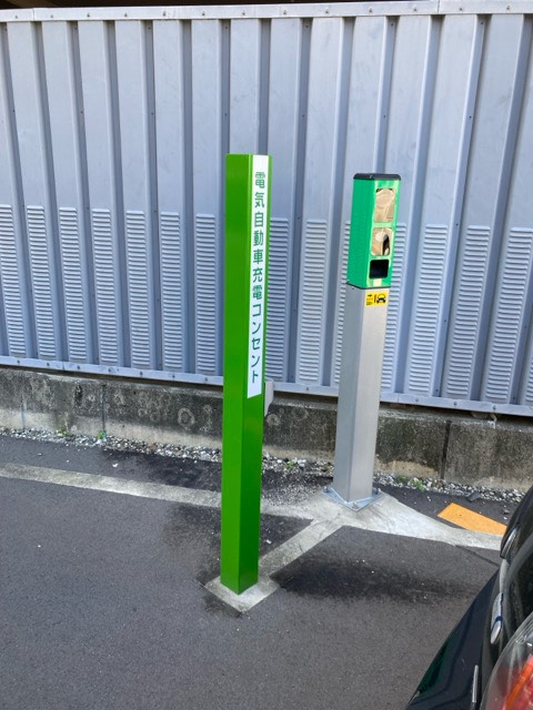 ラッキーパーキングの駐車場に無料のコンセントタイプの充電器があります。満車でした。