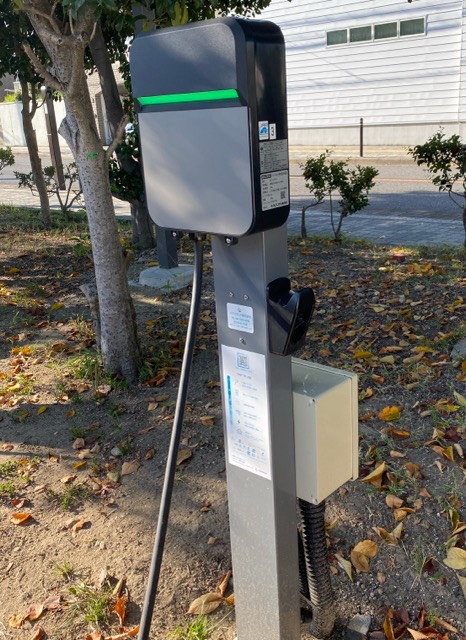 イイネマルシェの駐車場入りすぐに普通充電器が2台設置してあります。