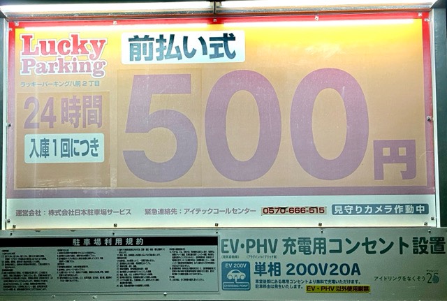 この系列にしては駐車料金が独特で、入庫一回につき500円となっています。ご注意下さい。