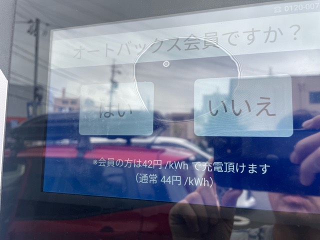 オートバックス会員証のQRを読み込むと1kw/42円で充電できるサービスが始まってました。