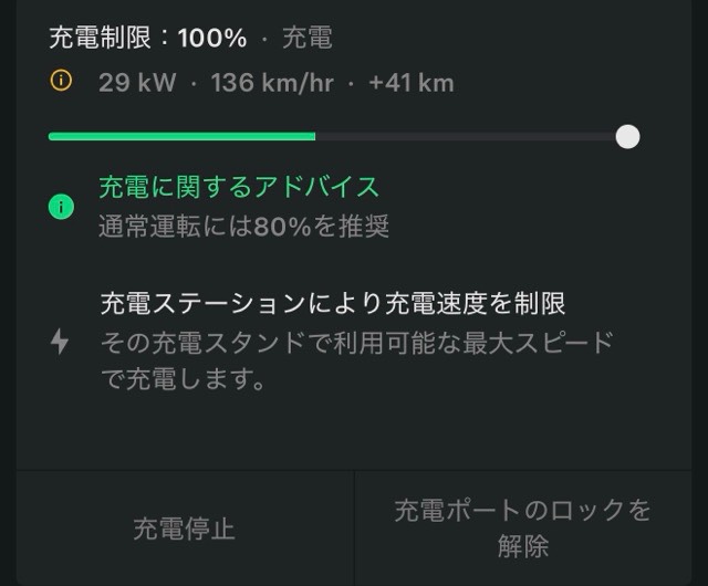 充電ケーブルをお車に接続後、タッチパネルにて「充電開始」を押してください。 CHAdeMOケーブルとテスラ車用のNACSケーブルが付いておりますが、同時充電はできませんのでご注意下さい(テスラモデルX・S・3は2020年10月以降生産のお車でご使用いただけます)。 充電90%まで。 ★データチームより★ 最大出力180kWは、お車が対応している場合の参考値です。