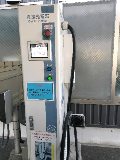 ファミマの駐車場に急速充電器が設置してあります。 1台分充電出来ます。